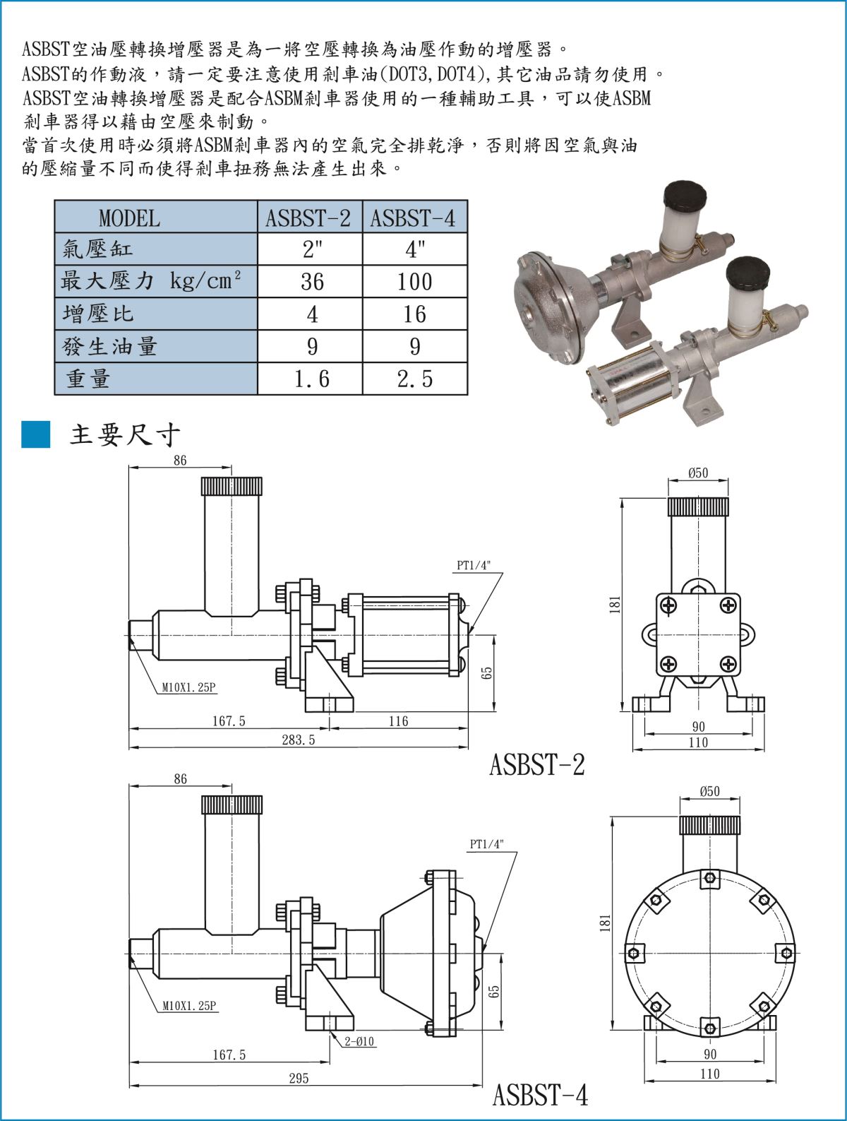 - 功能:空氣壓力轉換為油壓